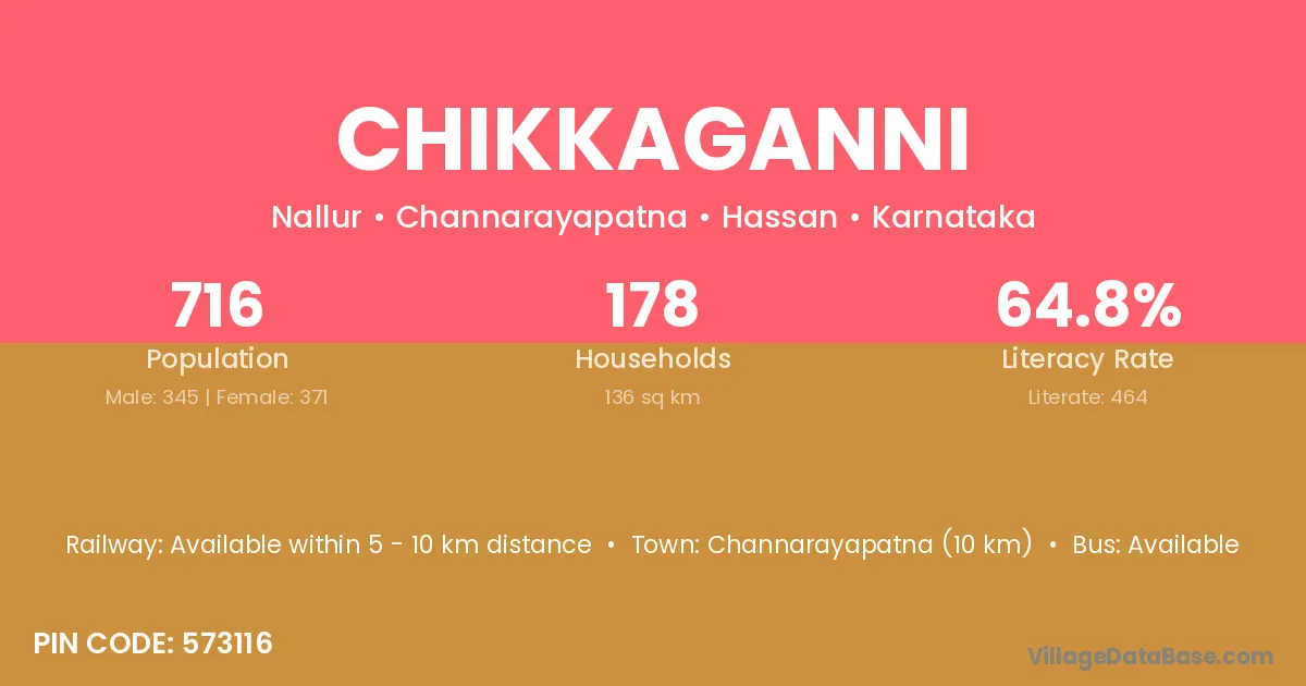 Chikkaganni village has a total population of 716 people, of which 345 are males and 371 are females.