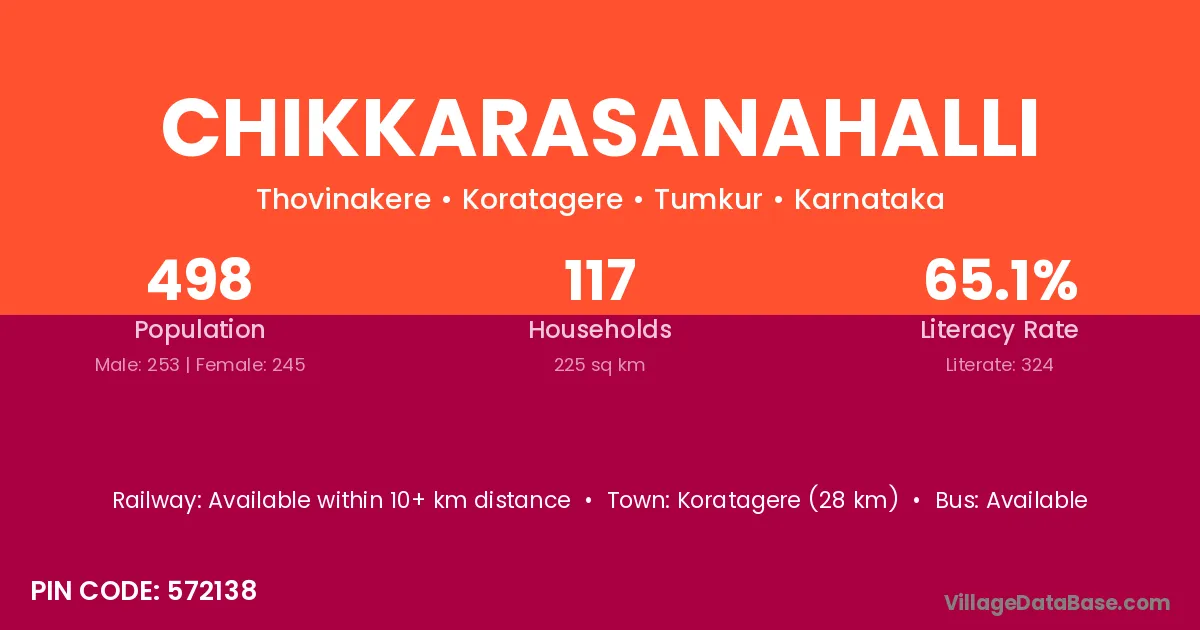 Chikkarasanahalli village has a total population of 489 people, of which 233 are males and 256 are females.