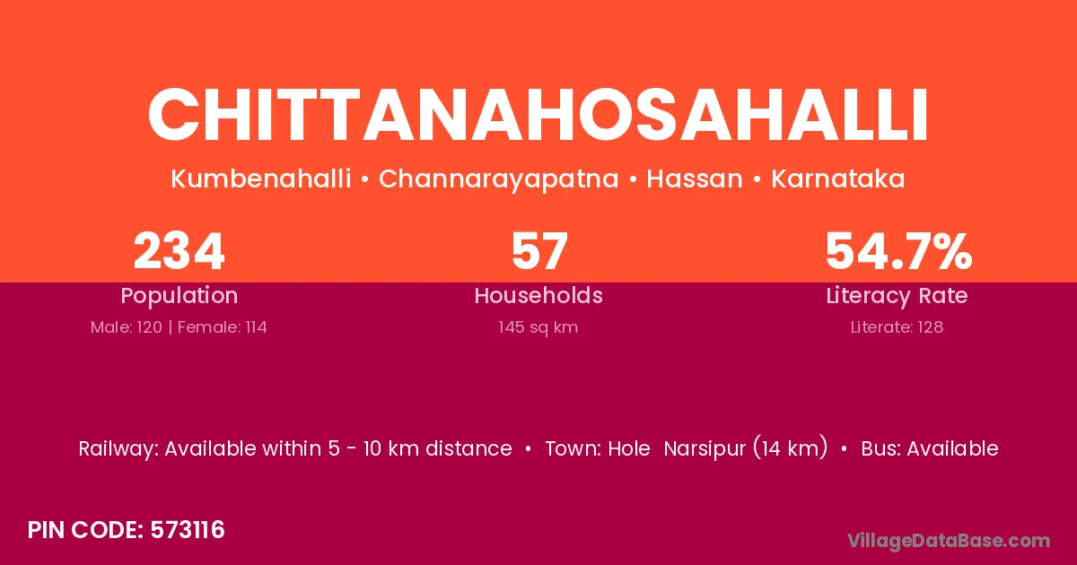 Chittanahosahalli village has a total population of 234 people, of which 120 are males and 114 are females.