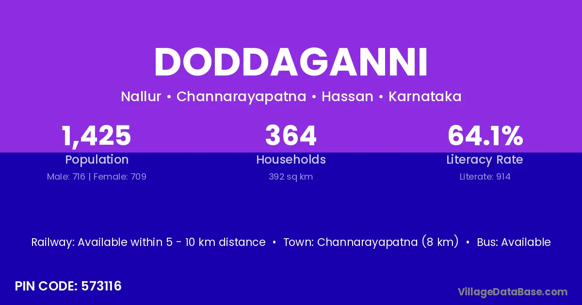 Channarayapatna (8 km) is the nearest town to Doddaganni village for major economic activities and is located approximately 8 km away.