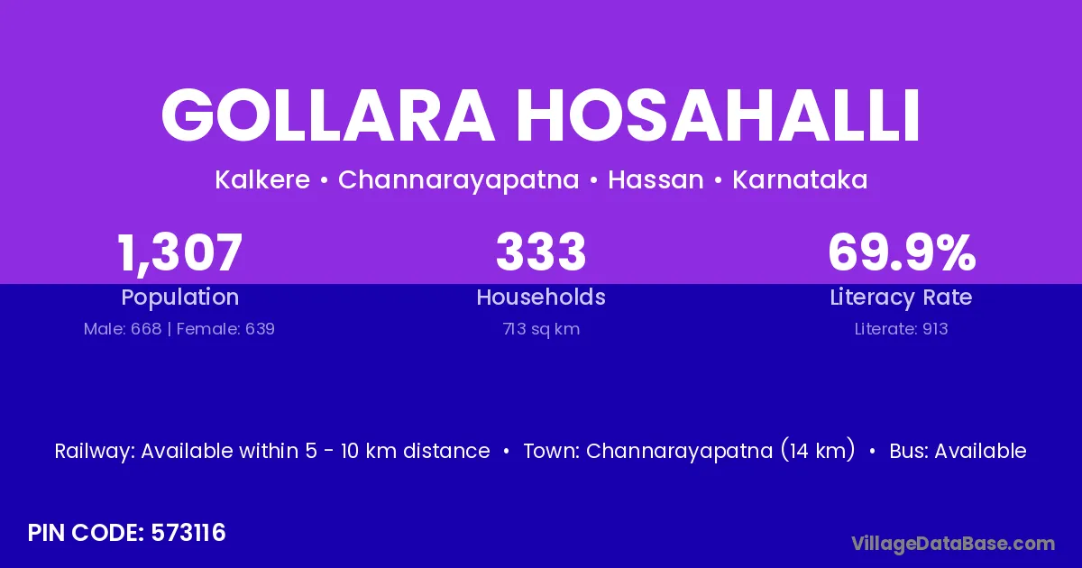 Gollara Hosahalli village has a total population of 1,307 people, of which 668 are males and 639 are females.