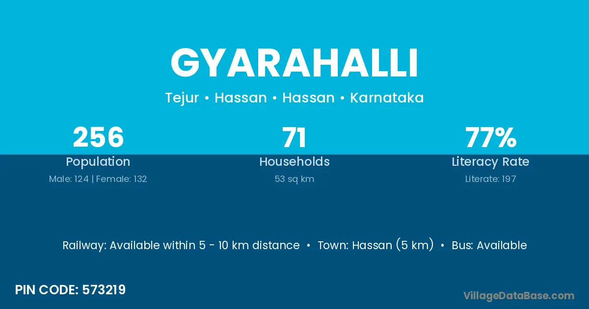 Channarayapatna (18 km) is the nearest town to Gyarahalli village for major economic activities and is located approximately 18 km away.