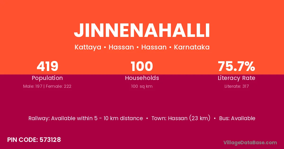 Channarayapatna (25 km) is the nearest town to Jinnenahalli village for major economic activities and is located approximately 25 km away.