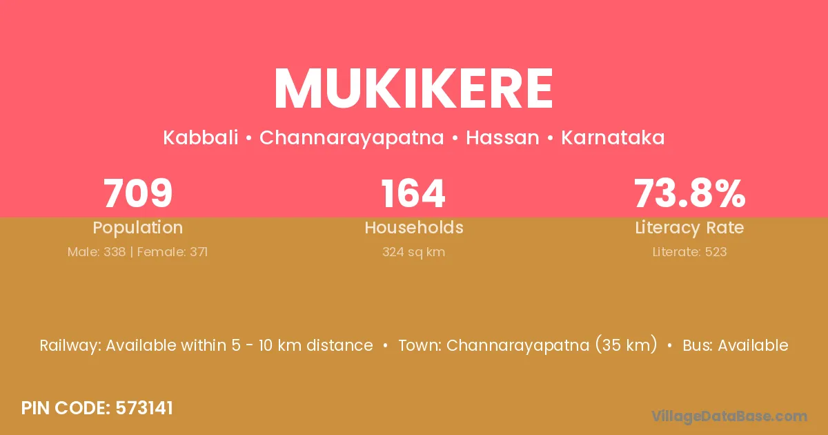 Channarayapatna (35 km) is the nearest town to Mukikere village for major economic activities and is located approximately 35 km away.