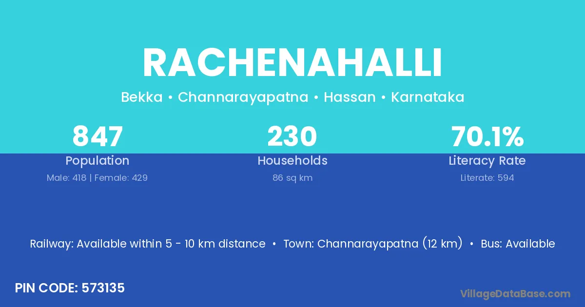 Rachenahalli village has a total population of 847 people, of which 418 are males and 429 are females.