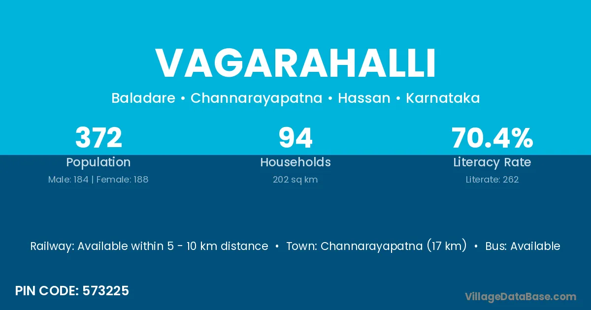 Channarayapatna (17 km) is the nearest town to Vagarahalli village for major economic activities and is located approximately 17 km away.