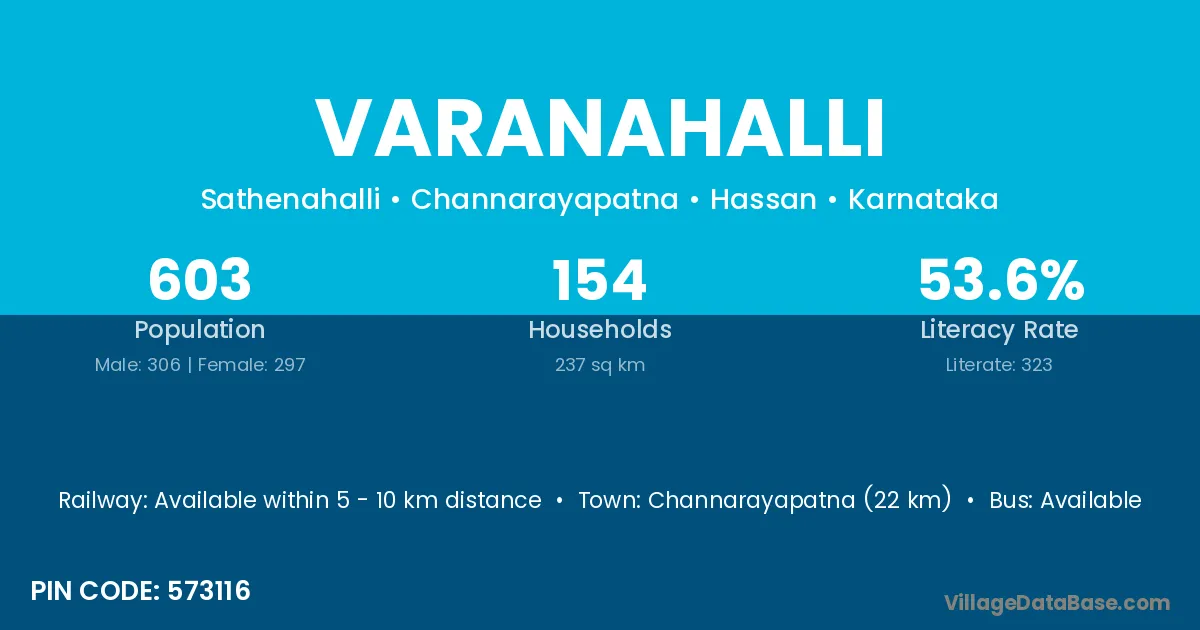 Channarayapatna (22 km) is the nearest town to Varanahalli village for major economic activities and is located approximately 22 km away.