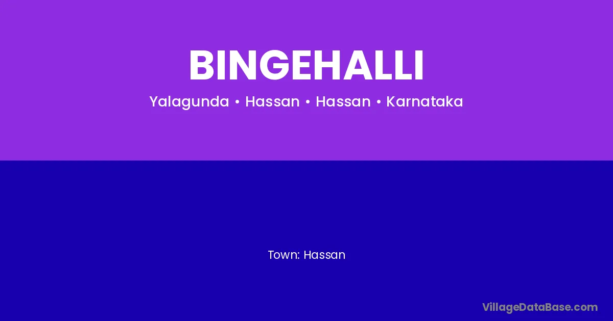 Bingehalli village is located in the Hassan Taluka of the Hassan district in Karnataka .