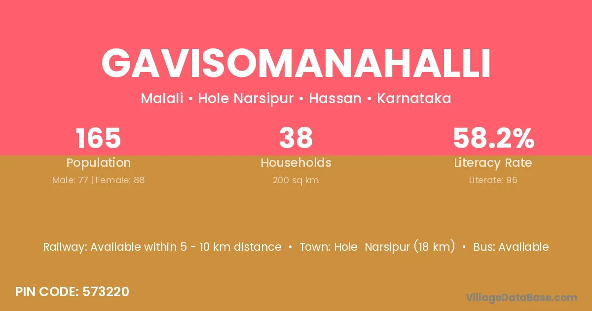 Gavisomanahalli village has a total population of 165 people, of which 77 are males and 88 are females.