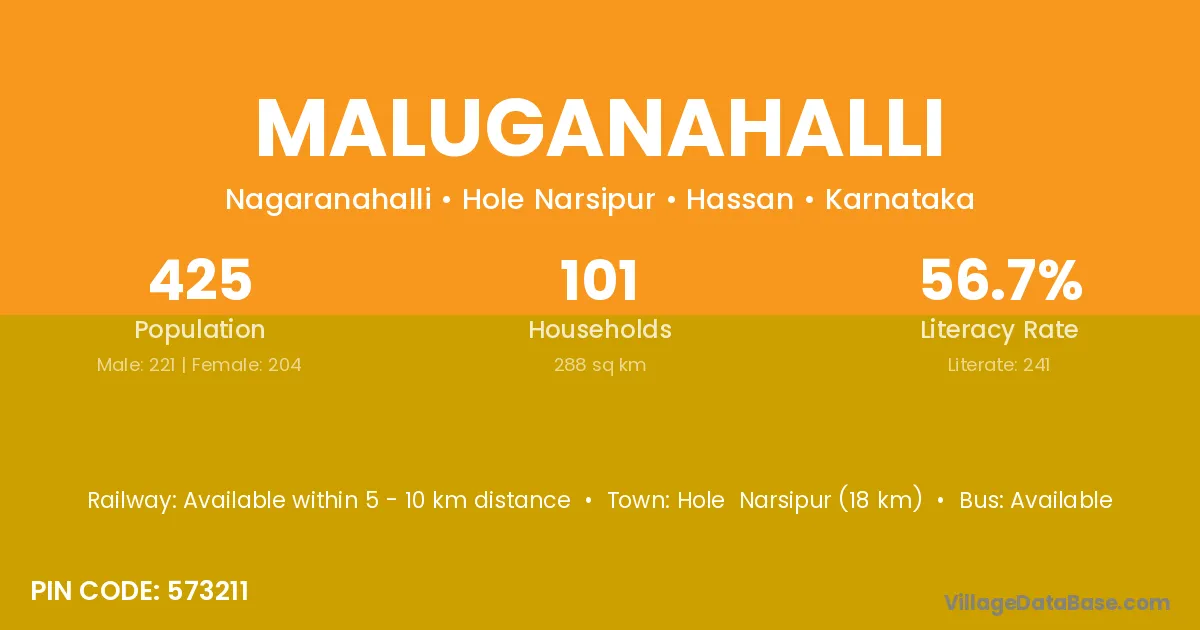 Maluganahalli village has a total population of 425 people, of which 221 are males and 204 are females.