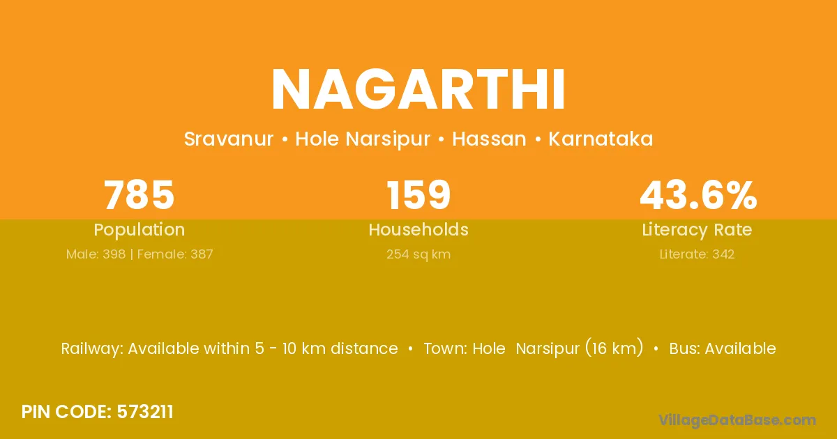 Hole Narsipur (16 km) is the nearest town to Nagarthi village for major economic activities and is located approximately 16 km away.