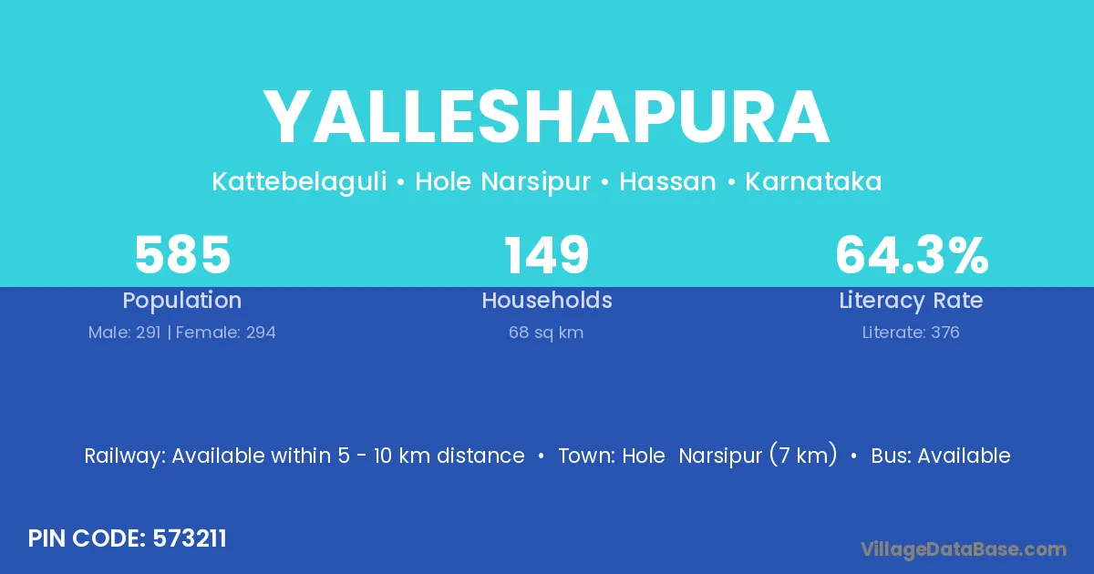 Hole Narsipur (7 km) is the nearest town to Yalleshapura village for major economic activities and is located approximately 7 km away.