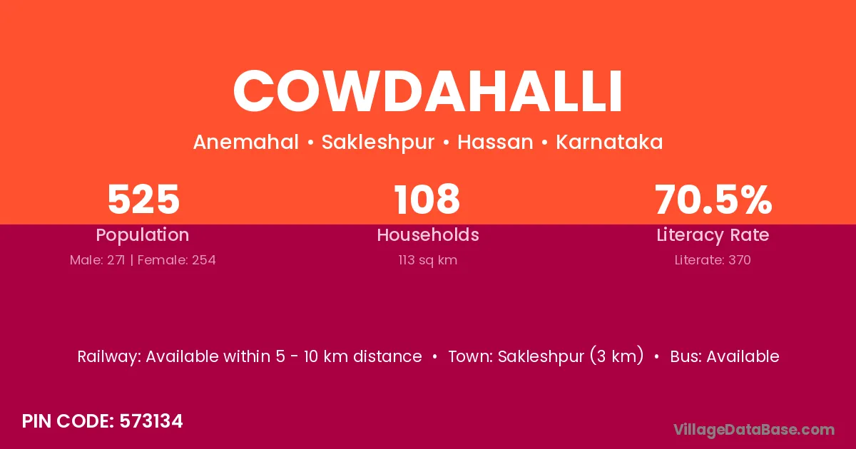 Cowdahalli village has a total population of 525 people, of which 271 are males and 254 are females.