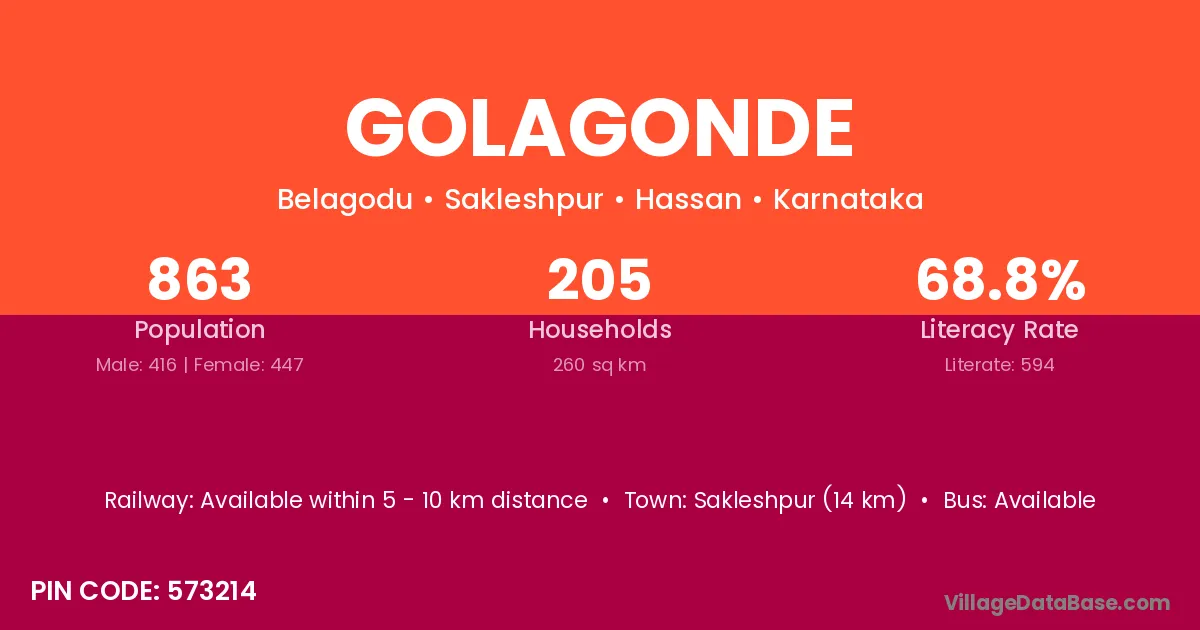 Sakleshpur (14 km) is the nearest town to Golagonde village for major economic activities and is located approximately 14 km away.