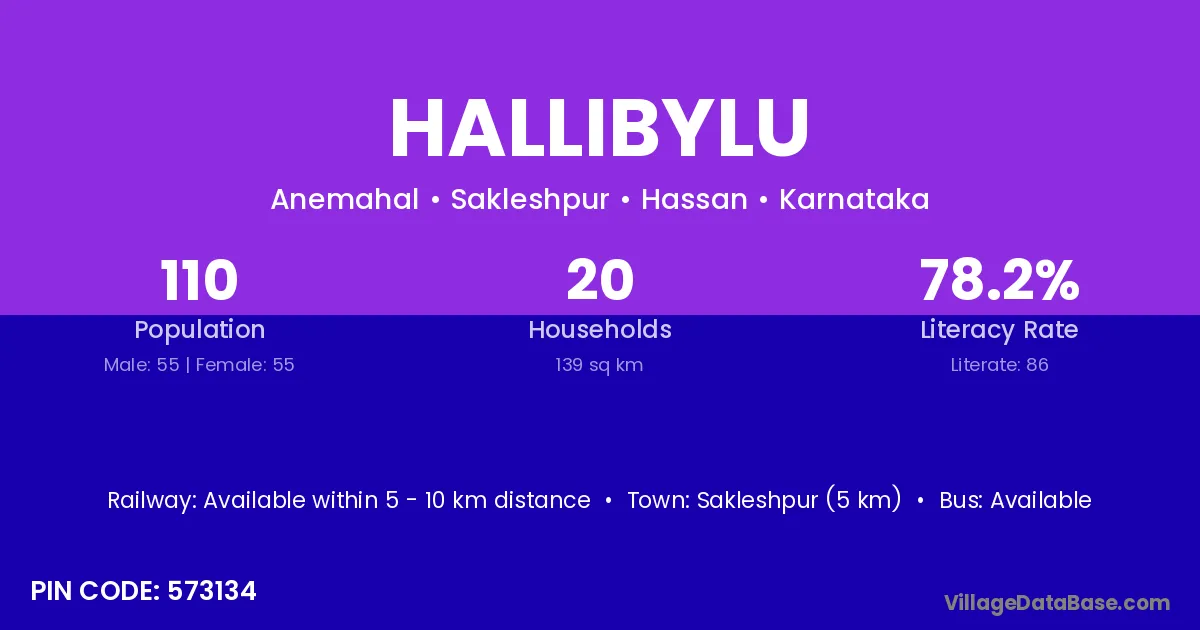 Sakleshpur (5 km) is the nearest town to Hallibylu village for major economic activities and is located approximately 5 km away.
