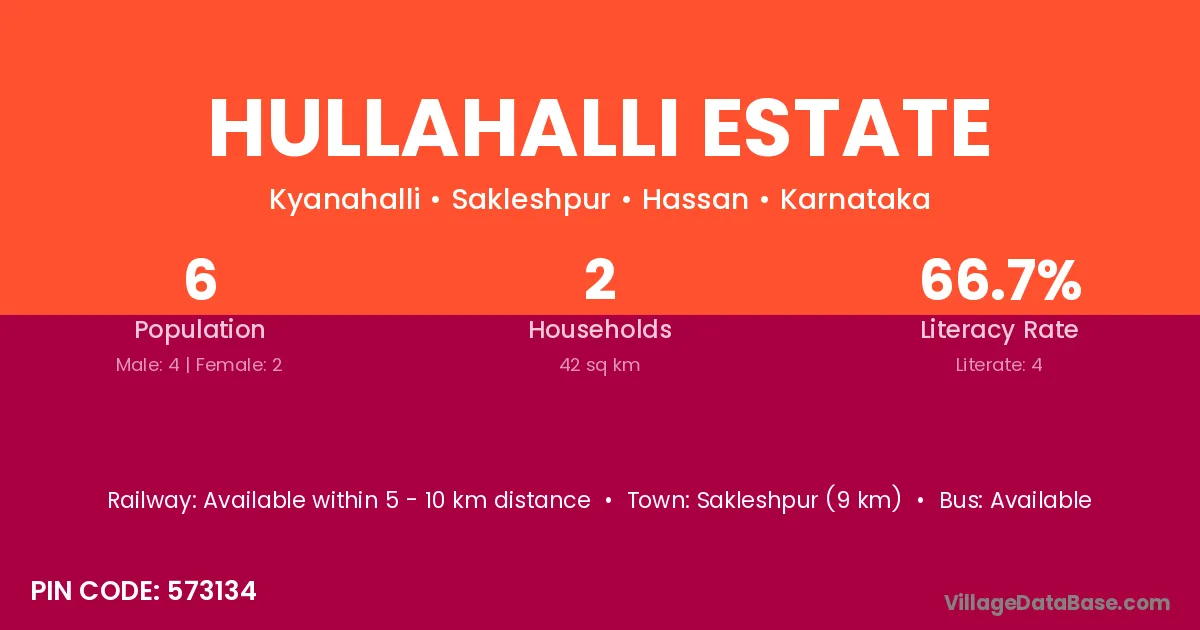 The literacy rate of Hullahalli Estate village is 66.67%. Male literacy stands at 75.00% and female literacy at 50.00%.