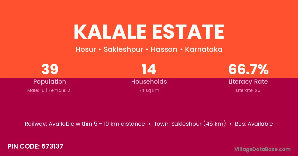 Kalale Estate village has a total population of 39 people, of which 18 are males and 21 are females.