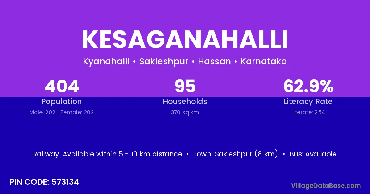 Kesaganahalli village has a total population of 404 people, of which 202 are males and 202 are females.