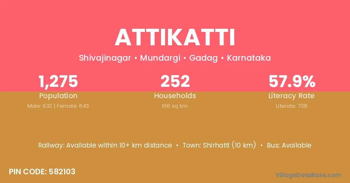 Attikatti village has a total population of 1,233 people, of which 606 are males and 627 are females.