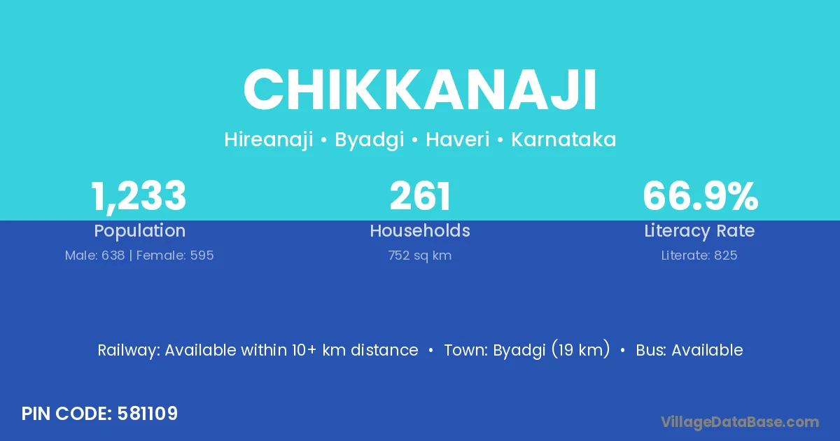 Byadgi (19 km) is the nearest town to Chikkanaji village for major economic activities and is located approximately 19 km away.