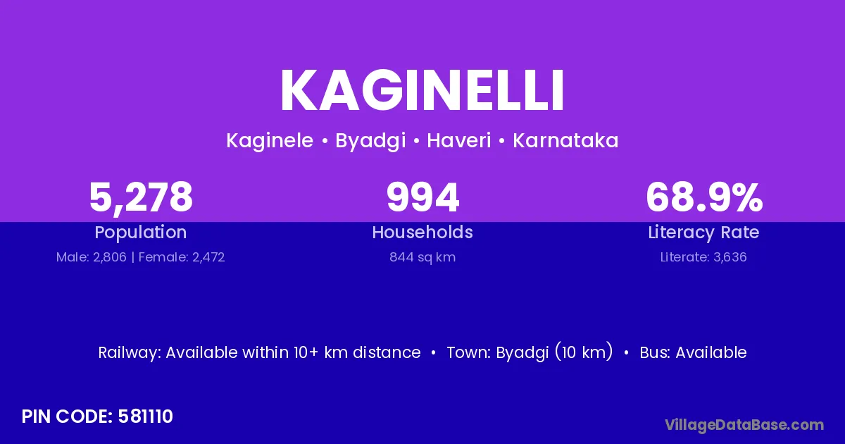 According to Census 2011 information, the village code of Kaginelli village is 581110.