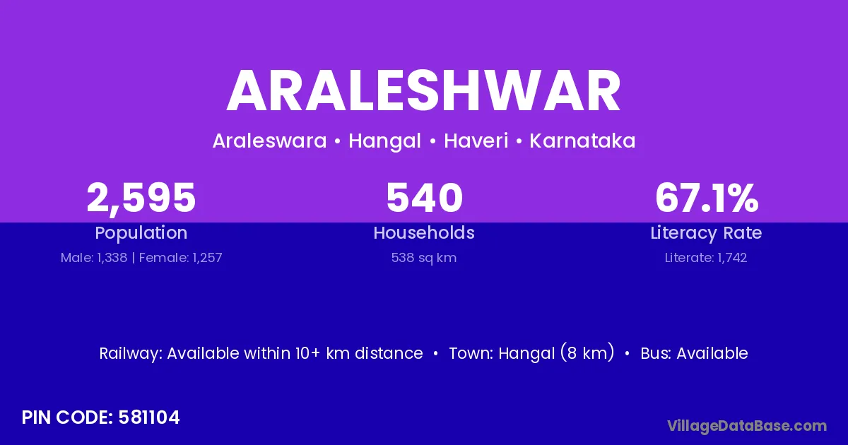 Hangal (8 km) is the nearest town to Araleshwar village for major economic activities and is located approximately 8 km away.