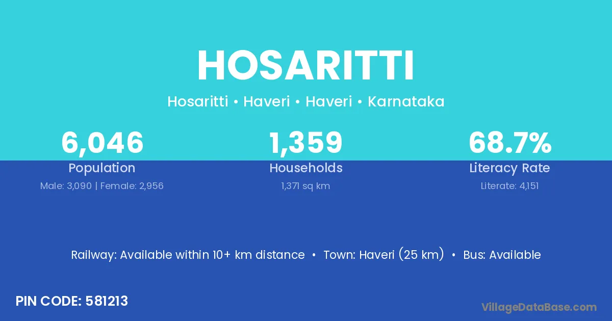 Haveri (25 km) is the nearest town to Hosaritti village for major economic activities and is located approximately 25 km away.