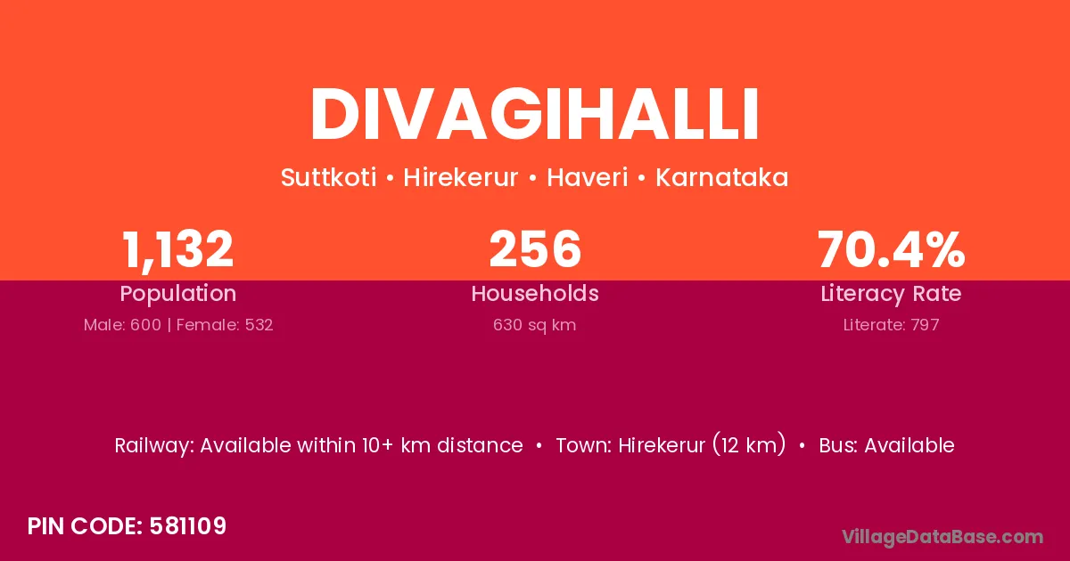 Hirekerur (12 km) is the nearest town to Divagihalli village for major economic activities and is located approximately 12 km away.