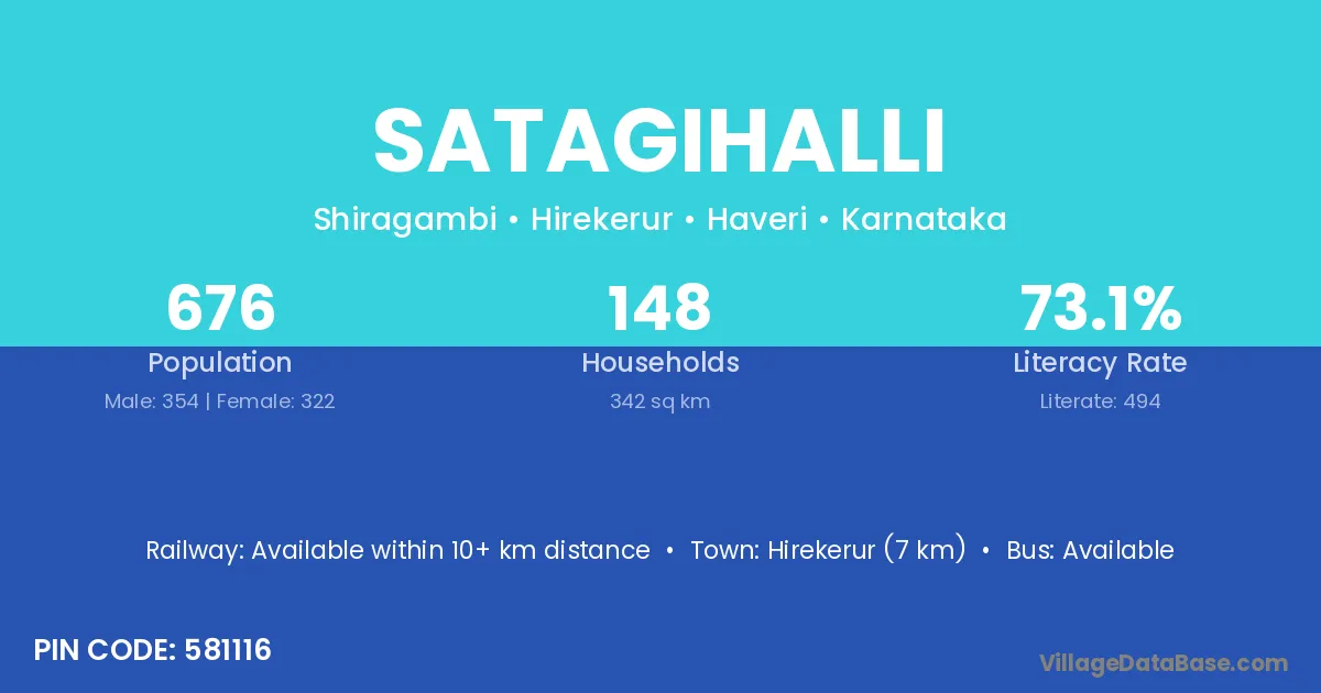 Hirekerur (7 km) is the nearest town to Satagihalli village for major economic activities and is located approximately 7 km away.