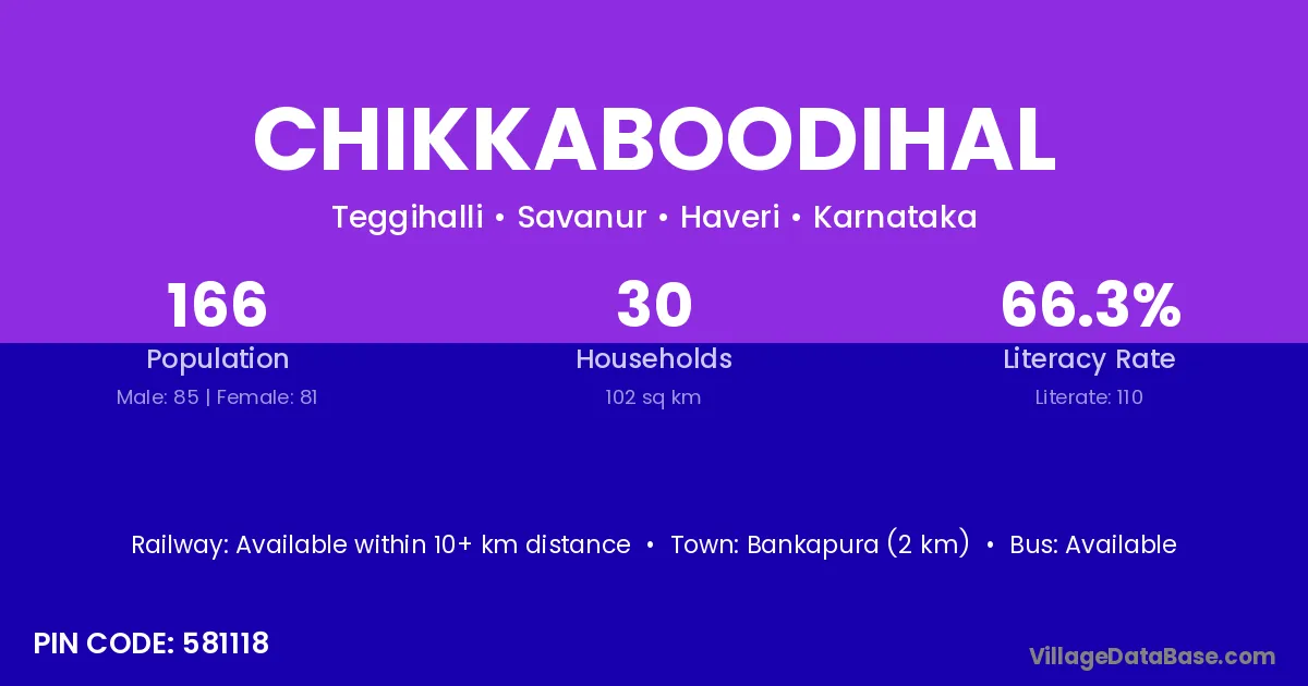 Bankapura (2 km) is the nearest town to Chikkaboodihal village for major economic activities and is located approximately 2 km away.