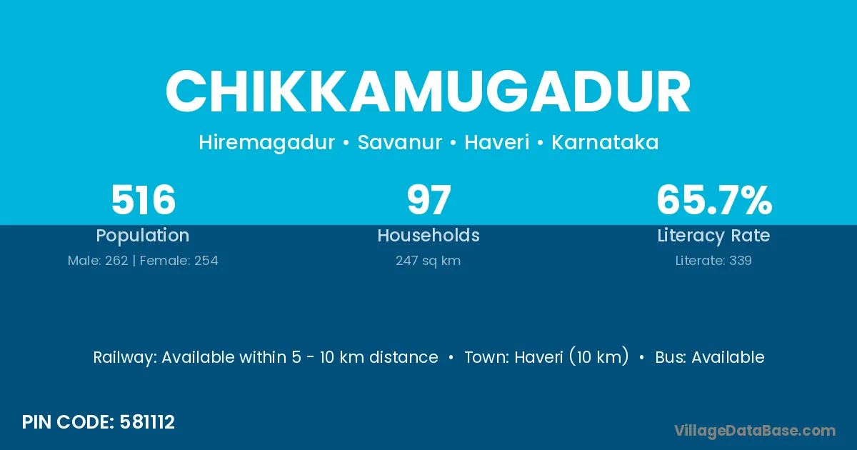 Haveri (10 km) is the nearest town to Chikkamugadur village for major economic activities and is located approximately 10 km away.