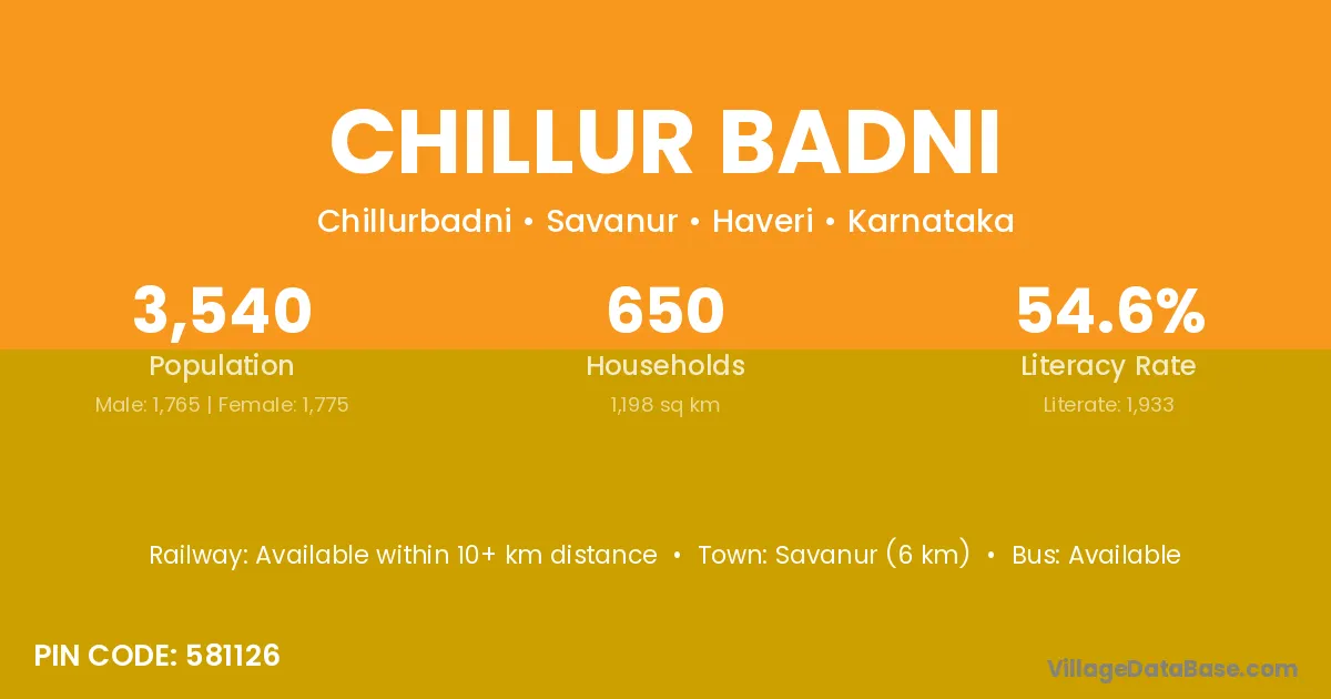 Savanur (6 km) is the nearest town to Chillur Badni village for major economic activities and is located approximately 6 km away.
