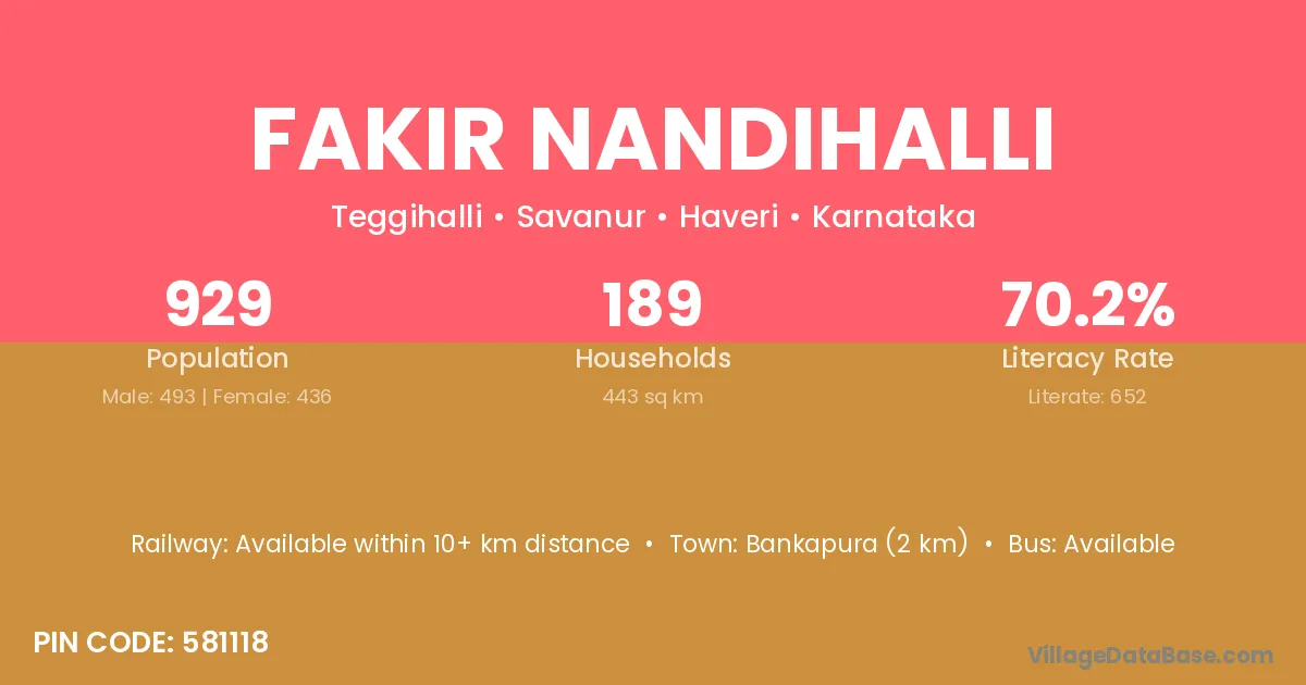 Bankapura (2 km) is the nearest town to Fakir Nandihalli village for major economic activities and is located approximately 2 km away.
