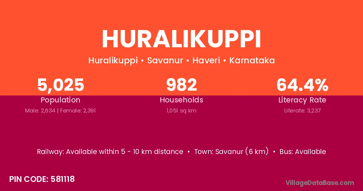 Savanur (6 km) is the nearest town to Huralikuppi village for major economic activities and is located approximately 6 km away.