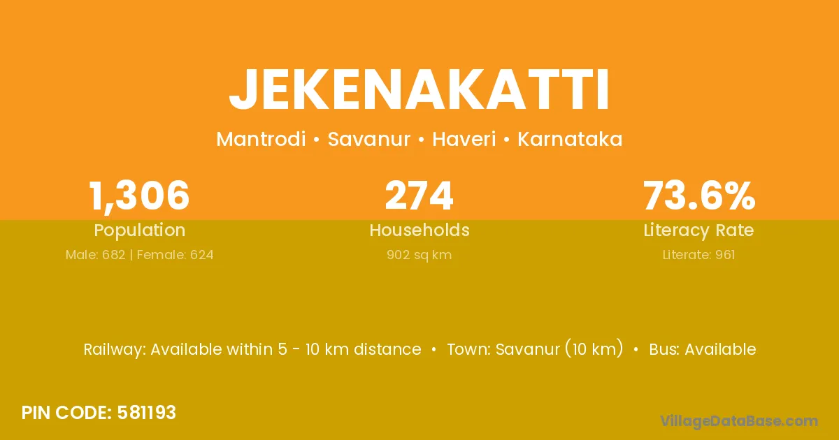 Savanur (10 km) is the nearest town to Jekenakatti village for major economic activities and is located approximately 10 km away.