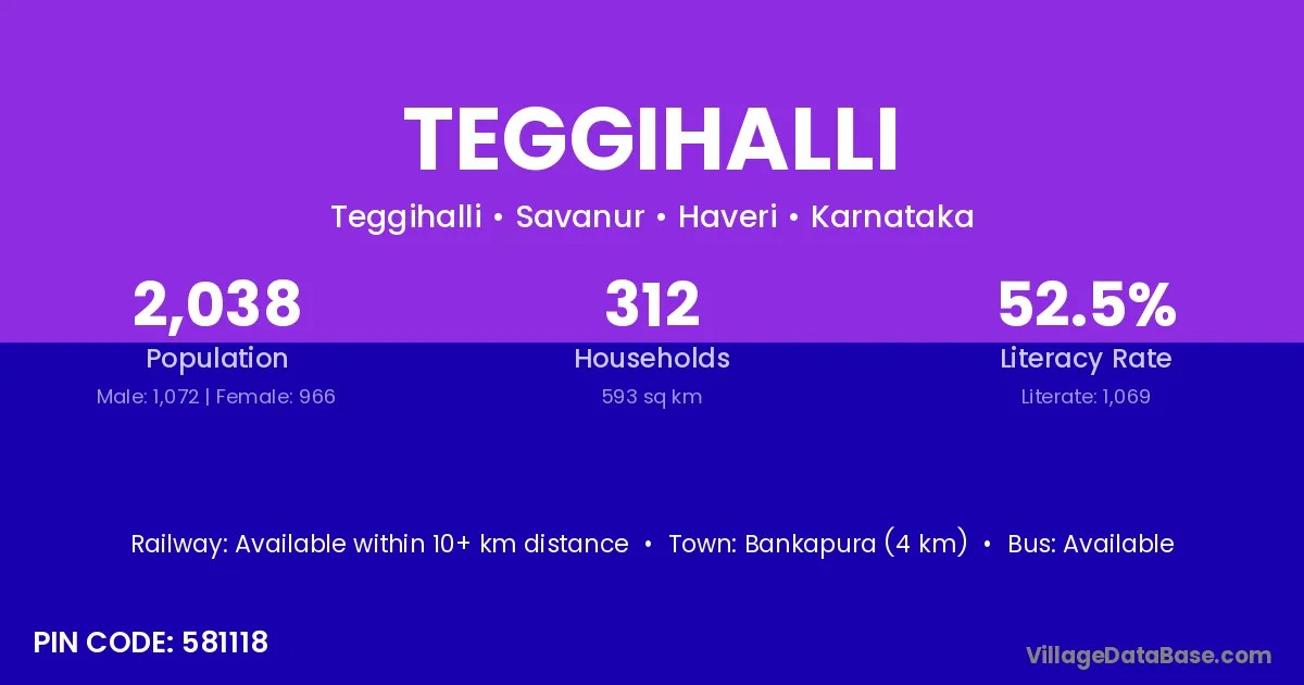 Bankapura (4 km) is the nearest town to Teggihalli village for major economic activities and is located approximately 4 km away.
