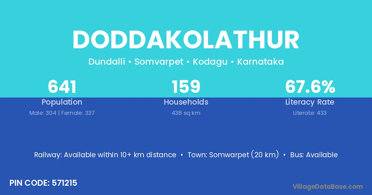 Somwarpet (20 km) is the nearest town to Doddakolathur village for major economic activities and is located approximately 20 km away.