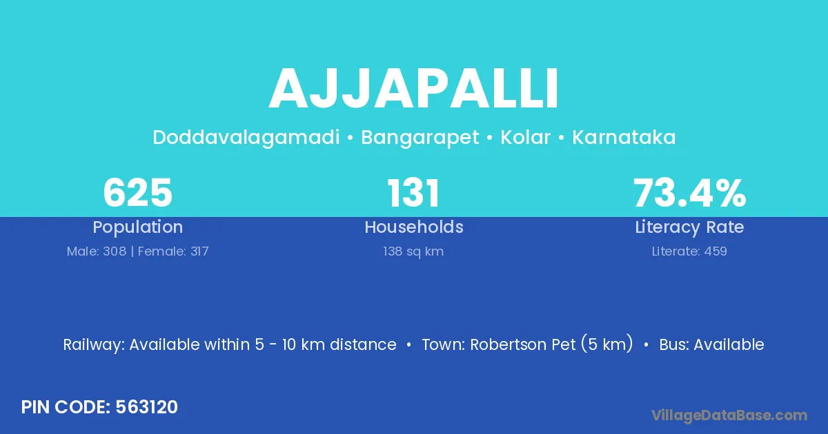 Robertson Pet (5 km) is the nearest town to Ajjapalli village for major economic activities and is located approximately 5 km away.