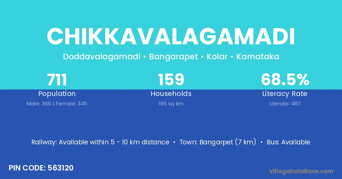 Bangarpet (7 km) is the nearest town to Chikkavalagamadi village for major economic activities and is located approximately 7 km away.