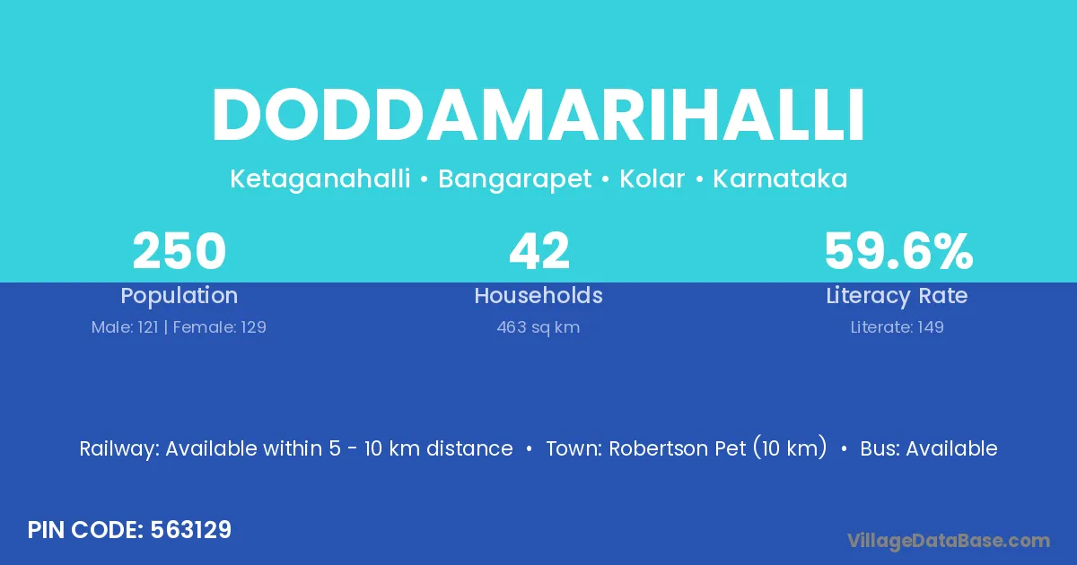 Robertson Pet (10 km) is the nearest town to Doddamarihalli village for major economic activities and is located approximately 10 km away.