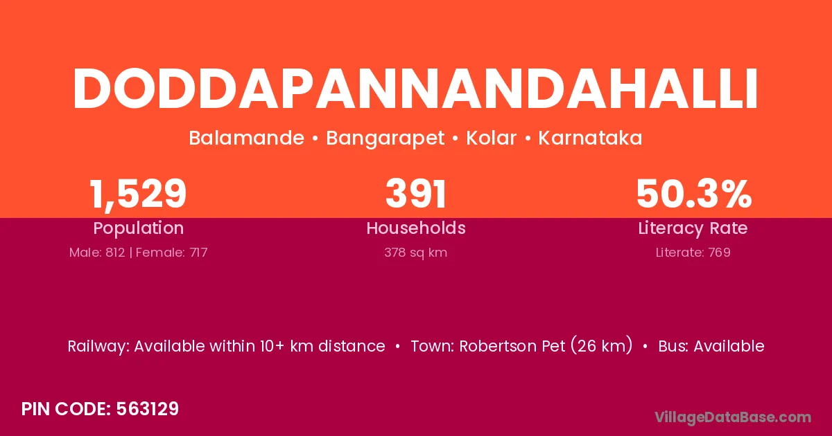 Robertson Pet (26 km) is the nearest town to Doddapannandahalli village for major economic activities and is located approximately 26 km away.