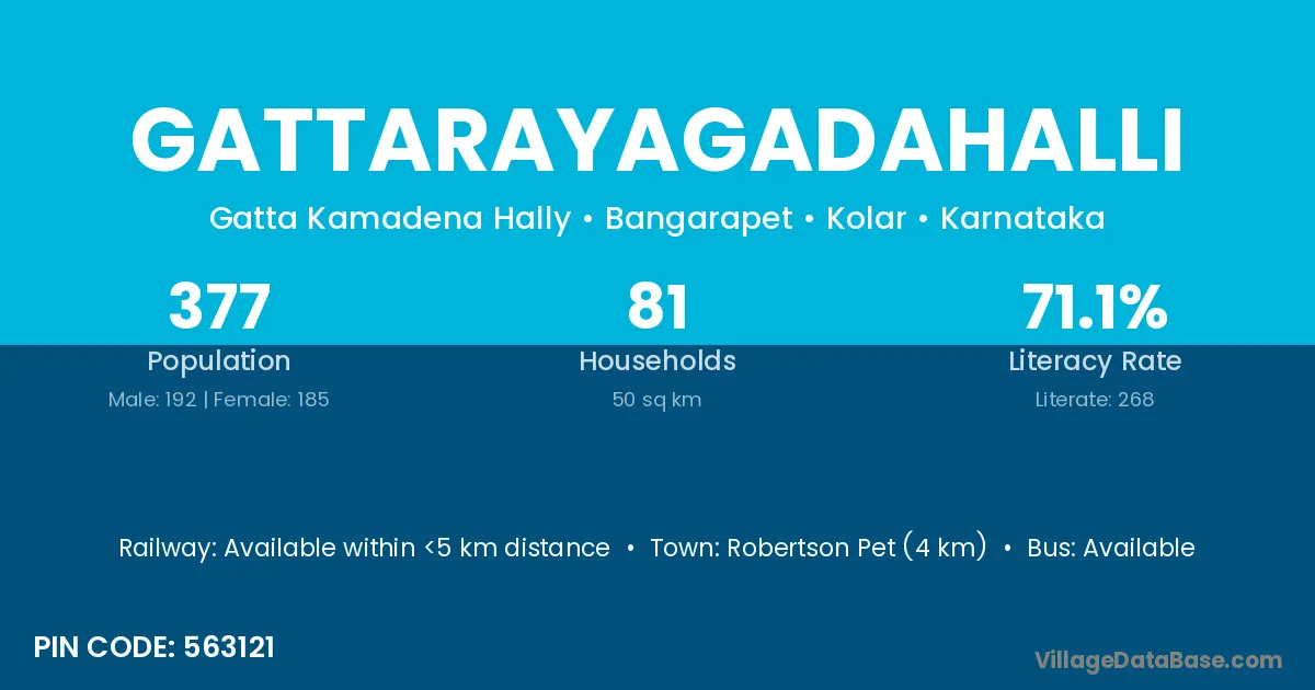 Robertson Pet (4 km) is the nearest town to Gattarayagadahalli village for major economic activities and is located approximately 4 km away.
