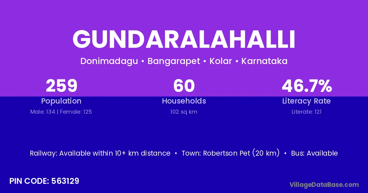 Robertson Pet (20 km) is the nearest town to Gundaralahalli village for major economic activities and is located approximately 20 km away.