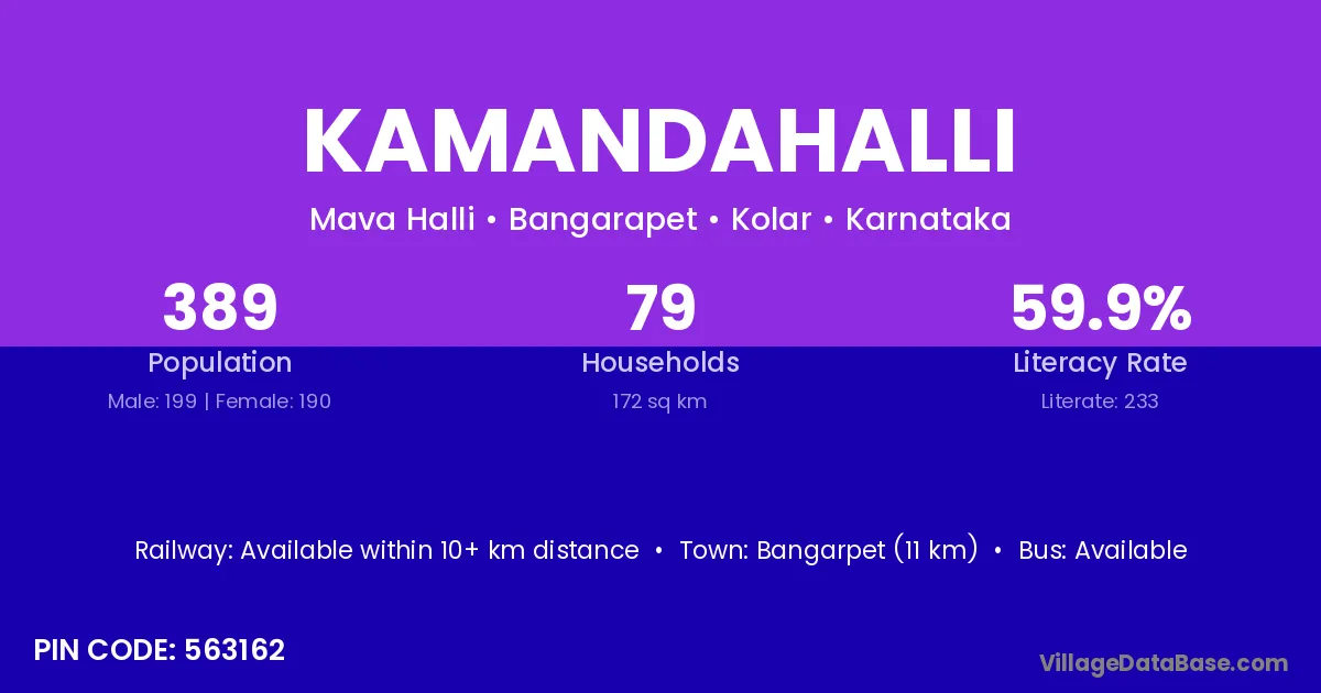 Bangarpet (11 km) is the nearest town to Kamandahalli village for major economic activities and is located approximately 11 km away.