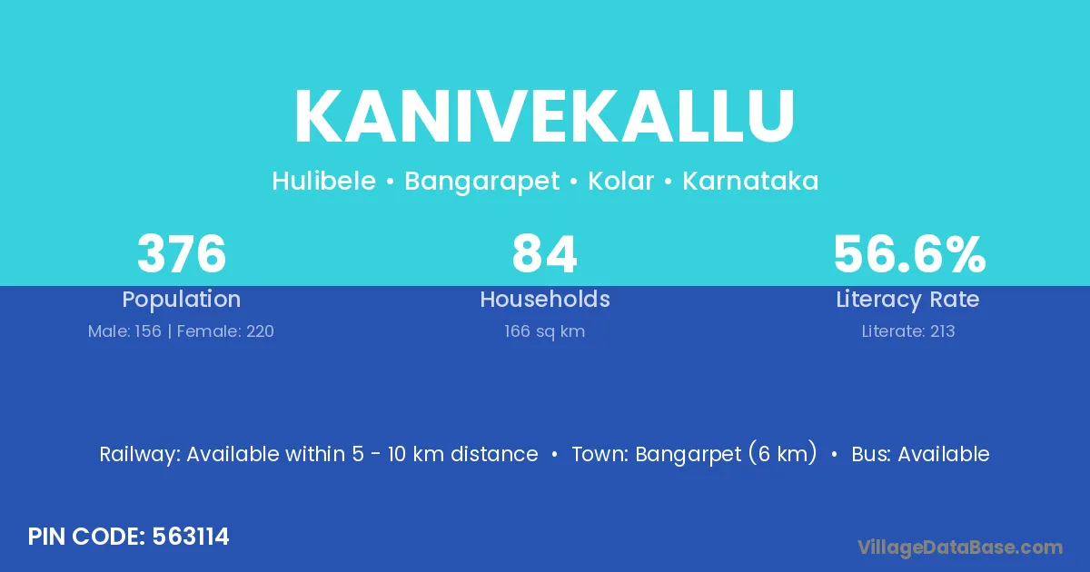 Bangarpet (6 km) is the nearest town to Kanivekallu village for major economic activities and is located approximately 6 km away.