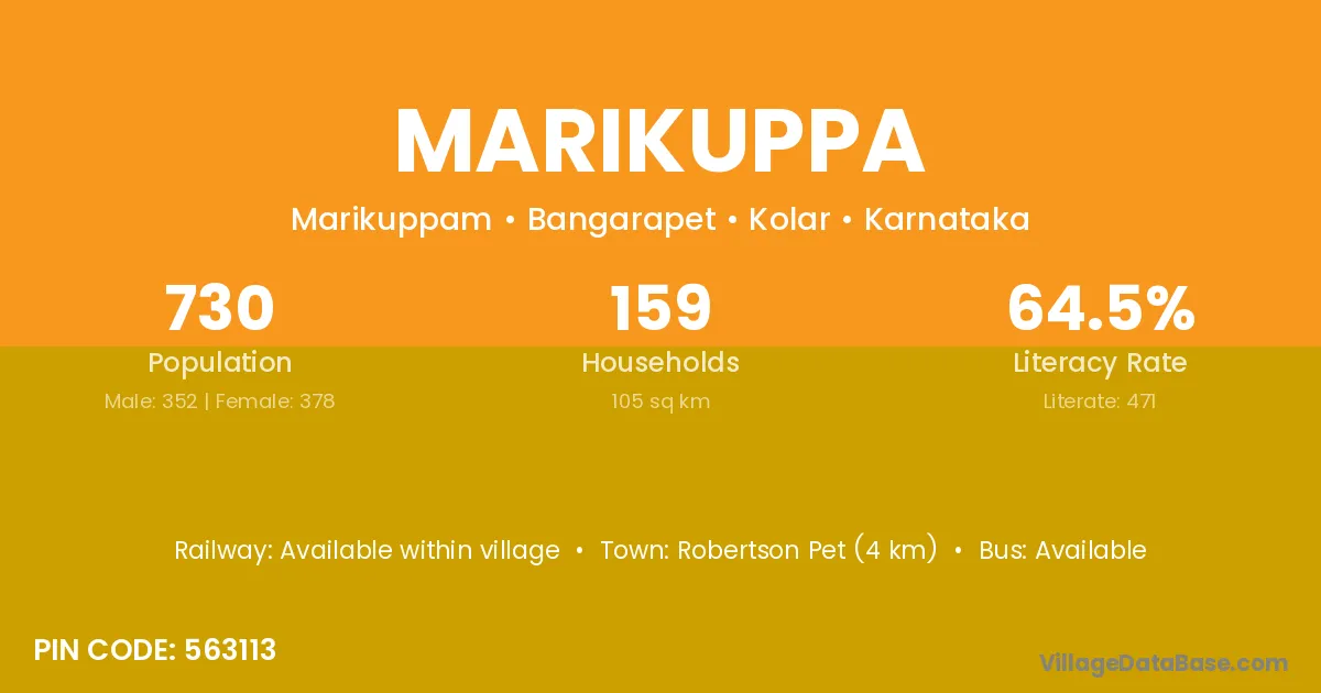 Robertson Pet (4 km) is the nearest town to Marikuppa village for major economic activities and is located approximately 4 km away.