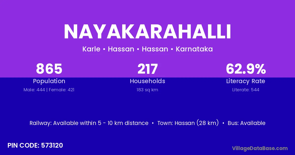 Bangarpet (8 km) is the nearest town to Nayakarahalli village for major economic activities and is located approximately 8 km away.