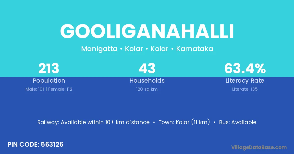 Kolar (11 km) is the nearest town to Gooliganahalli village for major economic activities and is located approximately 11 km away.