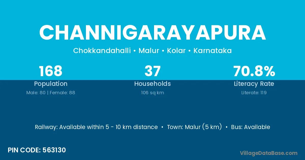 Malur (5 km) is the nearest town to Channigarayapura village for major economic activities and is located approximately 5 km away.