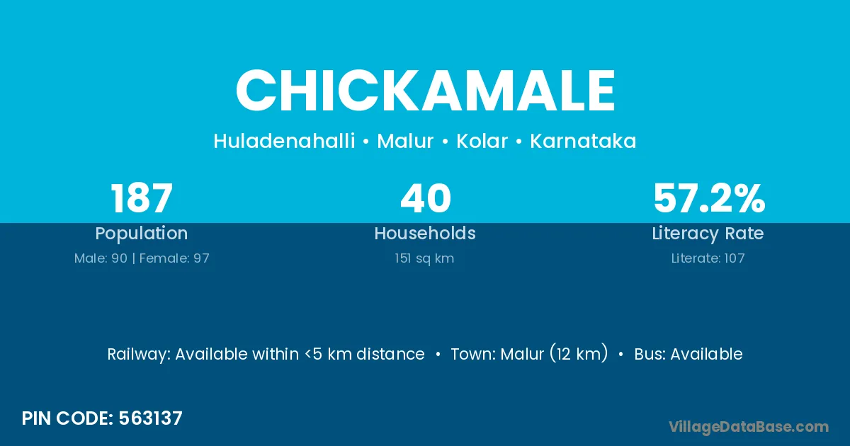 Malur (12 km) is the nearest town to Chickamale village for major economic activities and is located approximately 12 km away.